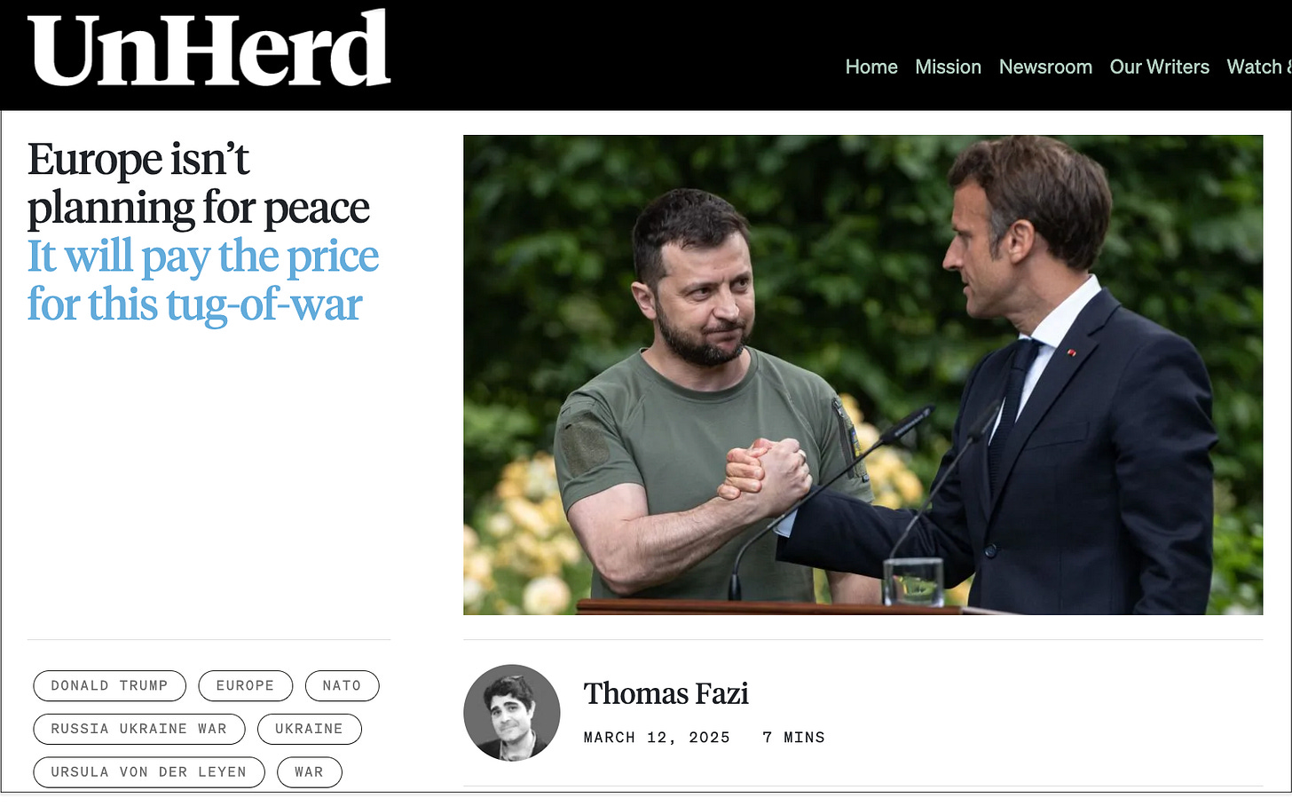 "Indeed, ever since Trump began negotiations with Putin to end the proxy war in Ukraine, European leaders have been doing everything in their power to derail his peace efforts, hijack the negotiations and prolong the conflict. After all, their insistence on a “just and lasting peace”, and their emphasis on Ukraine’s “territorial integrity”, is, in effect, a recipe for continuing the war under the guise of “peace through strength” — the same failed strategy that has landed Ukraine in this mess in the first place. Meanwhile, the Europeans have unveiled a sweeping rearmament plan, aimed at deterring Russia’s alleged expansionist ambitions — if not actually preparing for a war with Russia."