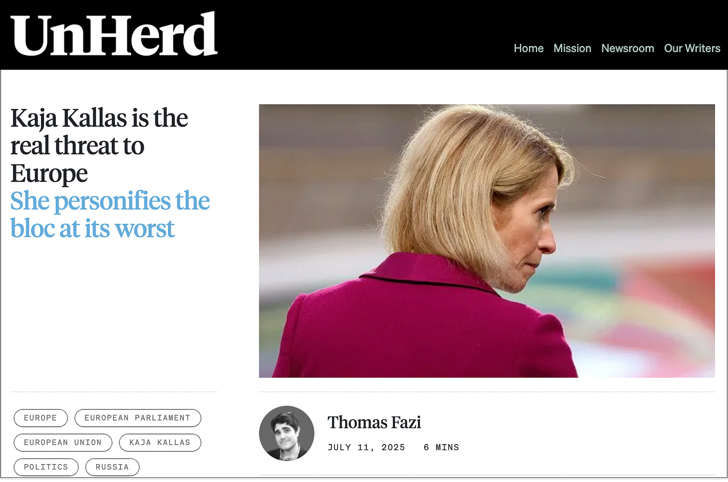 "...Yet, Kallas interprets her role otherwise, repeatedly acting as though she speaks on behalf of all Europeans — a top-down, anti-democratic approach that is symptomatic of a broader authoritarian trend supercharged by von der Leyen...."