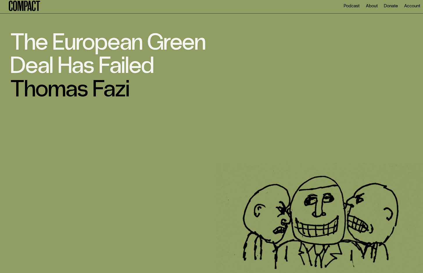 I’ve written for Compact about the failure of the European Green Deal, and why it is rooted in the anti-democratic, technocratic, fiscally restrictive and ideologically captured nature of the European Union itself: